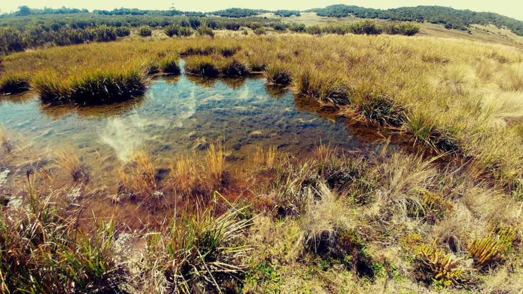 Peat bogs and mountain wetlands are high-elevation ecosystems characterized by waterlogged, acidic soils that accumulate organic matter (peat) due to slow decomposition rates. In Costa Rica, they are found in depressions and valleys in the Talamanca Mountain range. These habitats are dominated by sedges, cushion plants, mosses, and stunted shrubs, and host a highly specialized and often endemic flora and fauna. They play a critical role in water regulation, carbon storage, and climate moderation, acting as natural sponges that slowly release water to lower elevations.