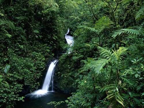 Tropical rainforests in Costa Rica are lush, evergreen ecosystems located primarily in the lowlands of the Caribbean and southern Pacific slopes. They are characterized by high rainfall (over 4,000 mm annually), dense canopy layers, and an extraordinary level of biodiversity. These forests host a wide range of flora and fauna, including epiphytes, towering emergent trees, and countless species of insects, birds, amphibians, and mammals.
