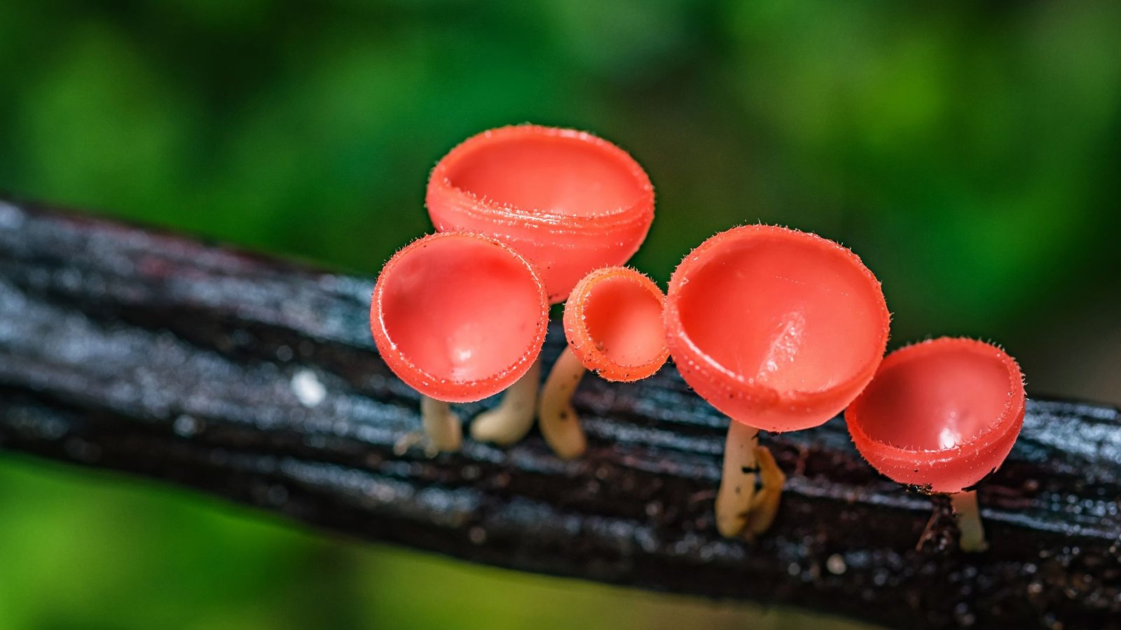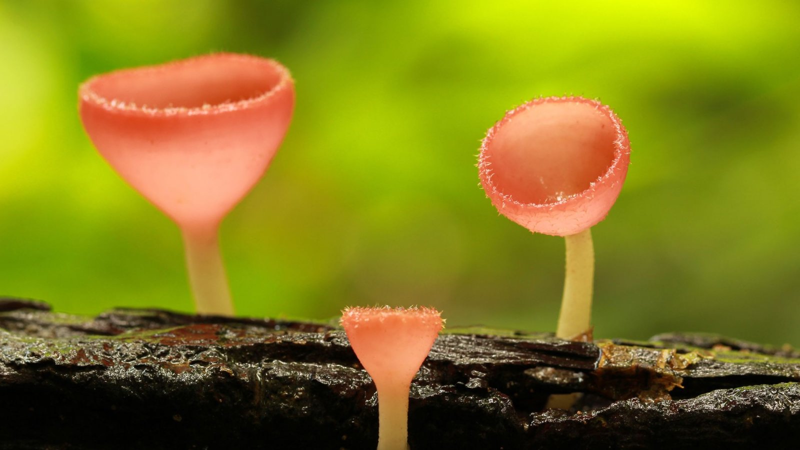 Faunal visitors: springtails graze inner hymenium; Dolichopodid flies shelter inside cups during rain.