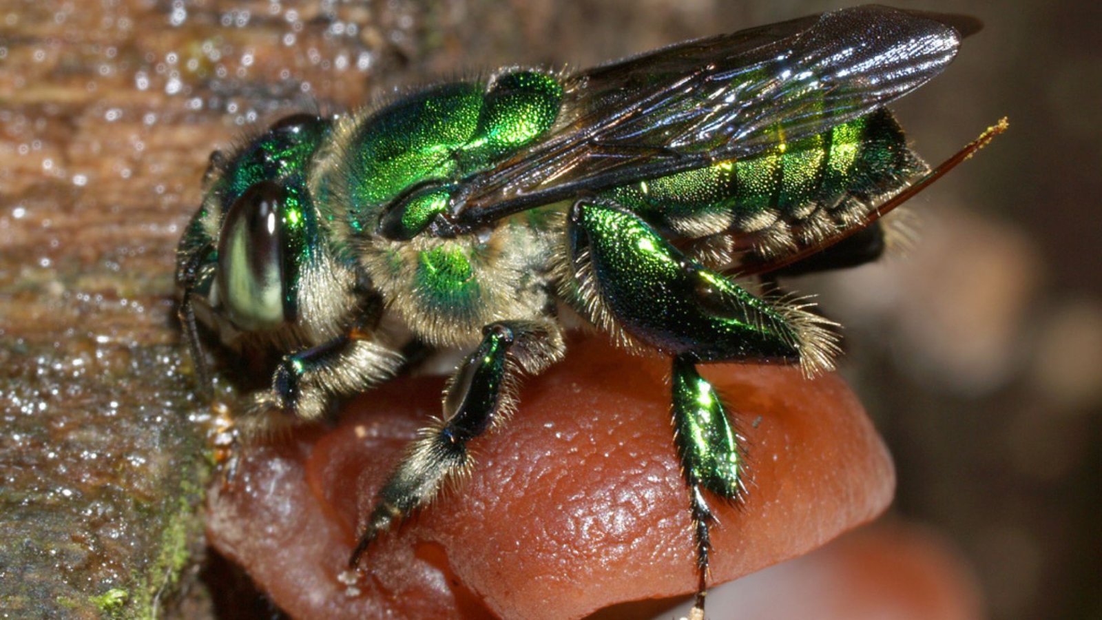 Pollinator & nectar feeder. Males gather volatile perfumes; both sexes take nectar; females collect pollen. This bee pollinates many orchids (esp. Stanhopeinae such as Coryanthes/Stanhopea/Gongora).