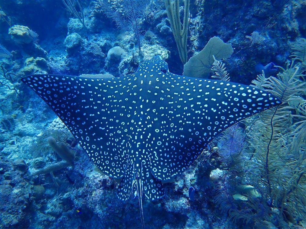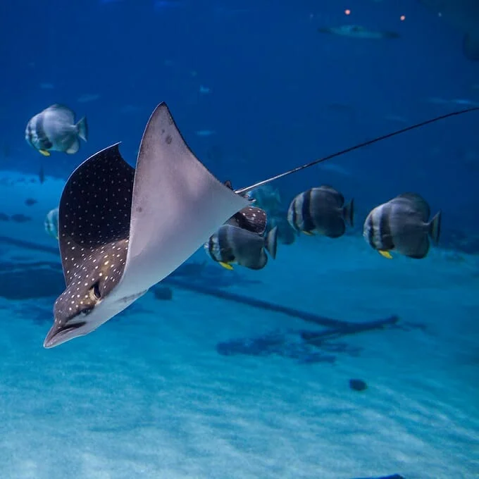 Each ray’s spot pattern is unique—researchers photo‑ID individuals much like whale sharks.